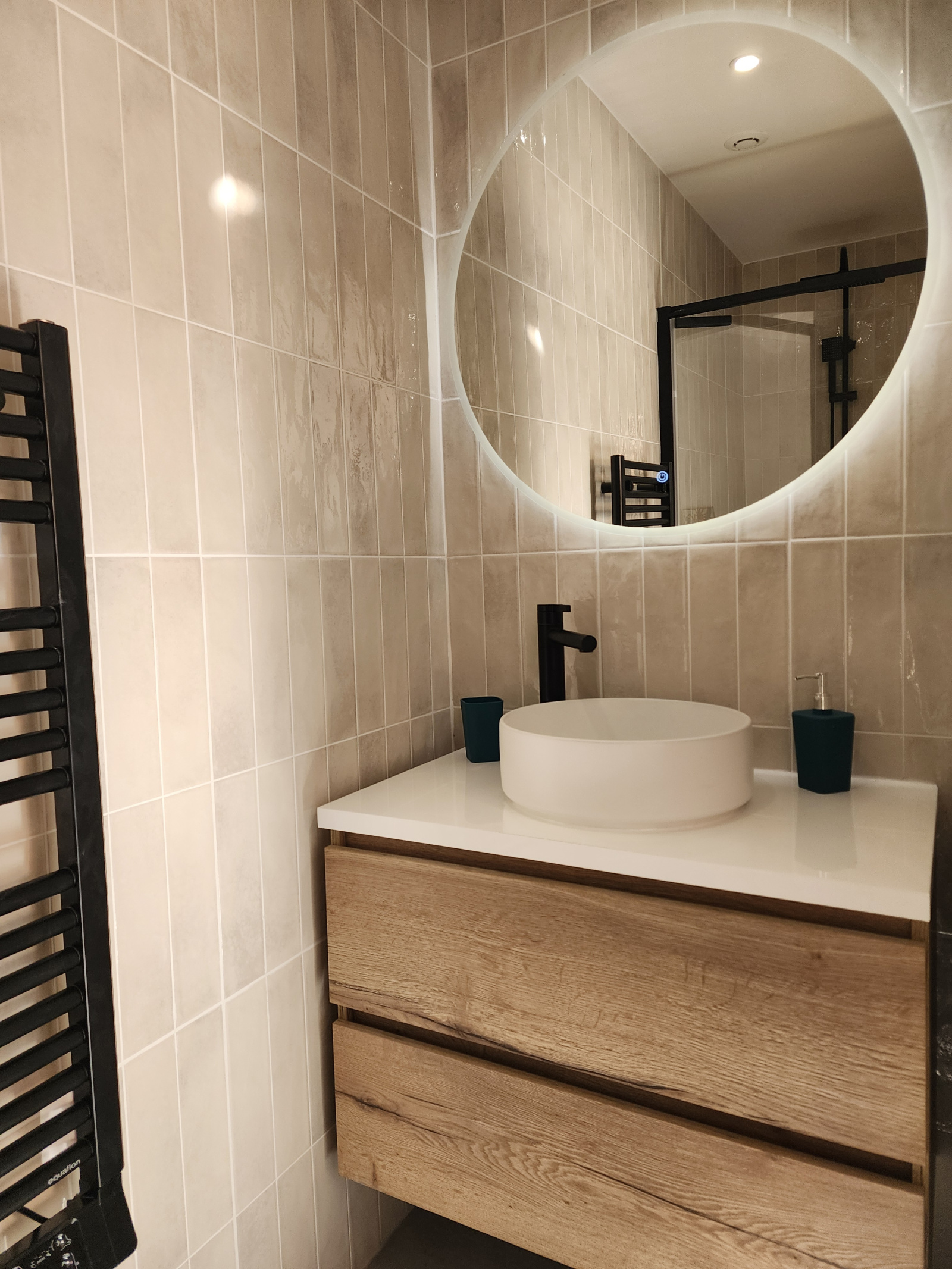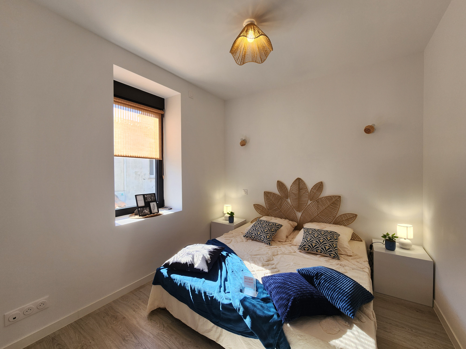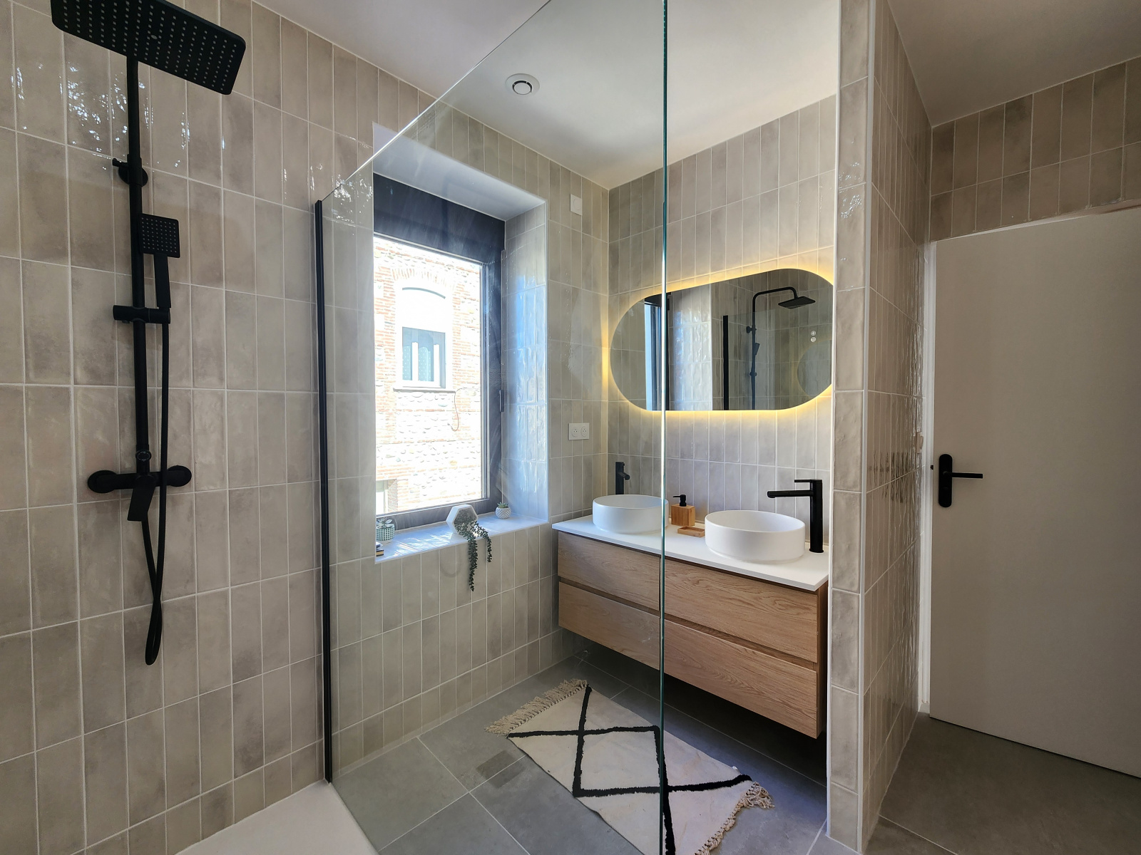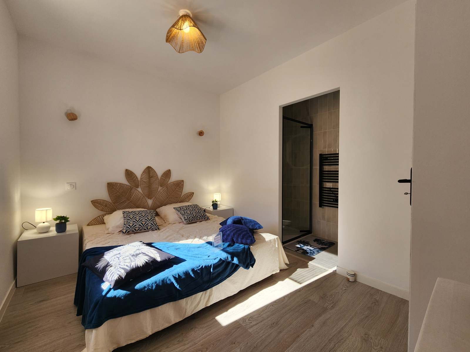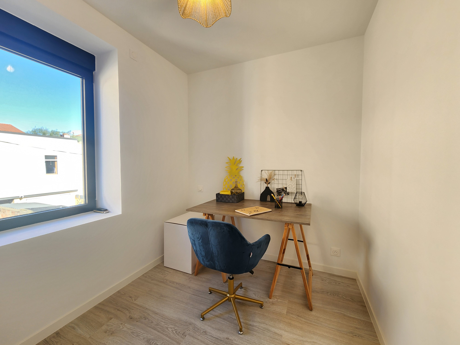 Côté nuit, l’espace se veut tout aussi harmonieux avec deux chambres, dont une suite parentale avec sa salle d’eau, un bureau parfait pour le télétravail ou une chambre d’appoint, ainsi qu’une seconde salle d’eau contemporaine équipée d’une double vasque et d’une douche à l’italienne. Un toilette séparé avec lave-mains complète l’ensemble.