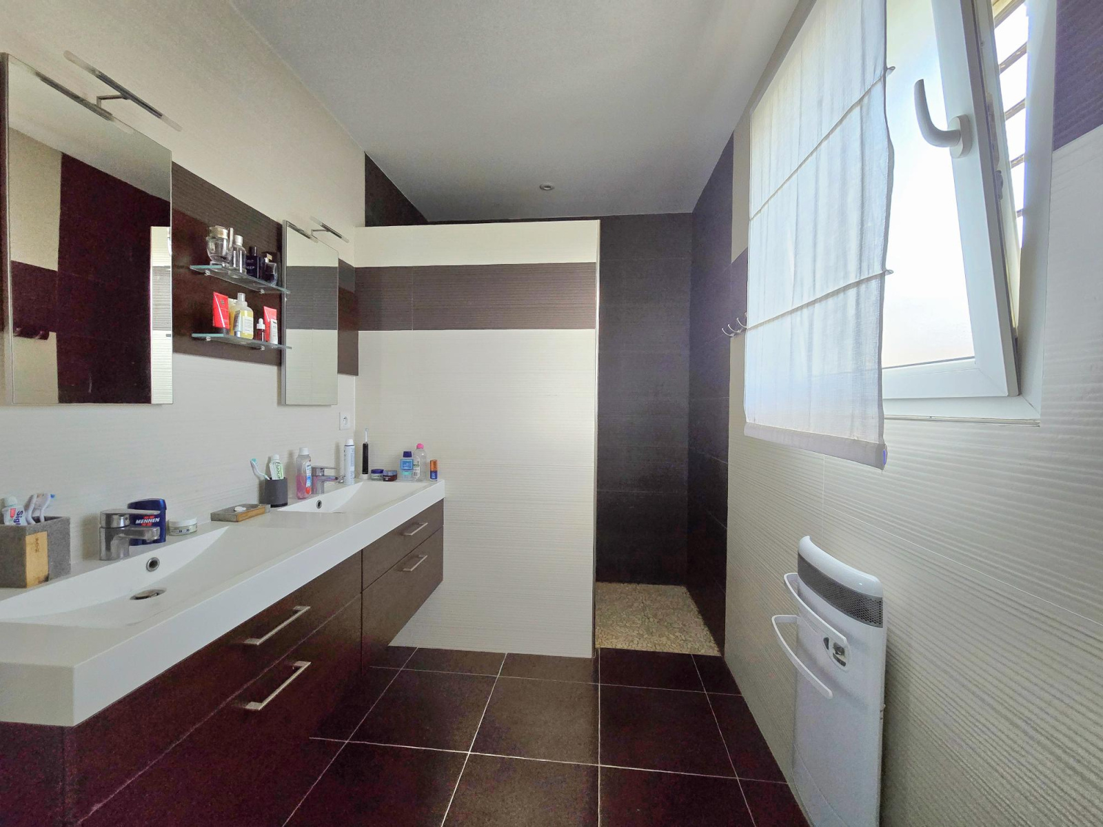Le rez-de-chaussée comprend également une suite parentale avec dressing et salle d’eau privative, un WC indépendant, une buanderie et un accès direct au garage.